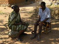 The workers are doing house to house visits to communicate health issues. They teach people to prevent diseases through good nutrition and balanced diet, boiling drinking water, environmental sanitation (latrines and mosquito nets, etc.), immunisation and behaviour change. They also visit the sick in the community including people living with HIV/AIDS (PLWH/A) and encouraging the relatives taking care for them.